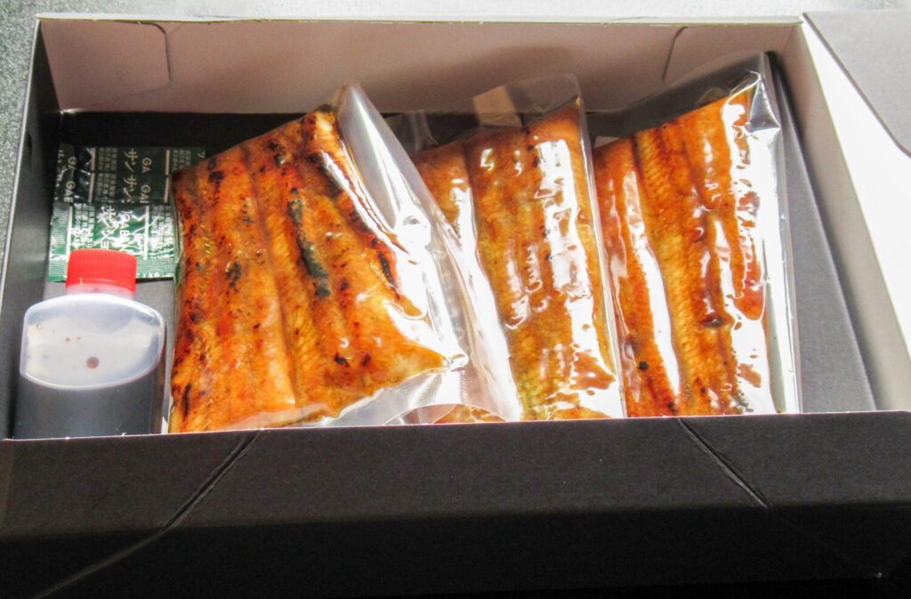 最初に用意したのは、「三河一色産うなぎの炭火焼1.5尾」のセット。